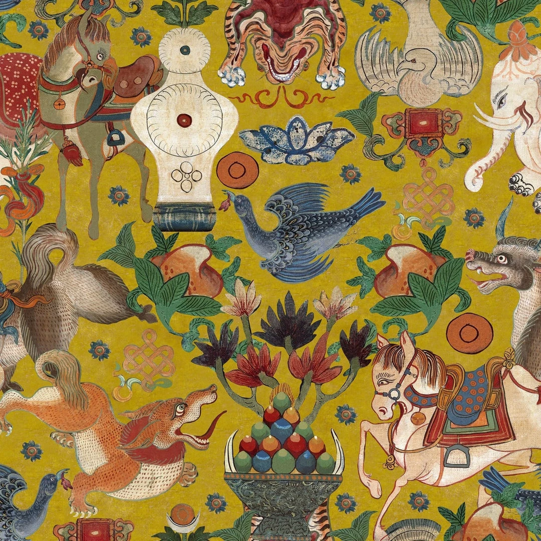 Mind The Gap Woodstock Collection Incantation Yellow Bohemian Wallpaper – Nature & Animals Design