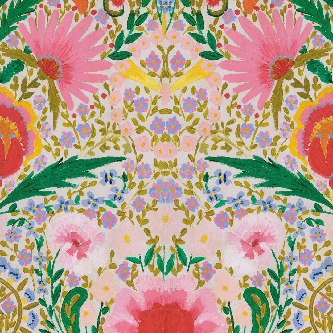 Listen to the lyrics of the Creedence Clearwater Revival classic as you find yourself amongst a mesmerising field of flowers, filling the air and vista with an assortment of vibrant scents and colours. Centred around a display of pink florals and a circular chain of blooms, the SUZIE Q print is filled with different varieties coming together to fill the walls with a colourful explosion, giving life to the room itself. Imagine the floral notes as you walk barefoot through this meadow, finding a new intricacy in between the layers of every petal each time you cast your eyes across this alluring print. Available with a light and dark background.