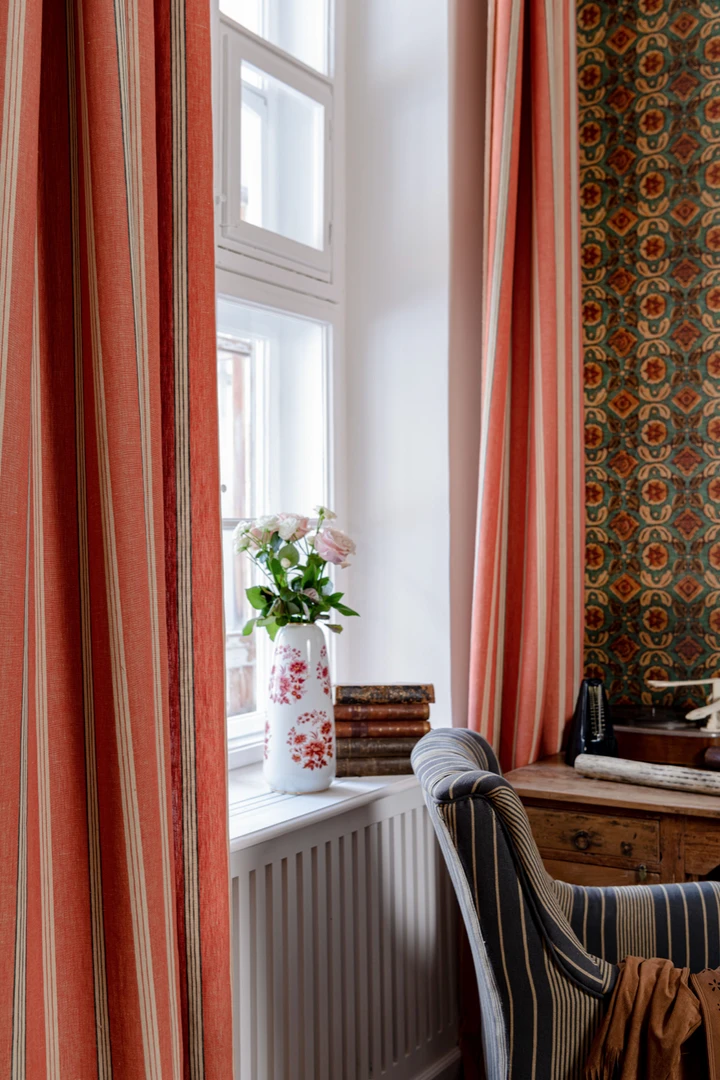 Referencing Vortex I, the rock festival held in Oregon in 1970, OREGON STRIPES has a colour palette which embodies the late summer and early autumn hues. The contrasting blue and auburn lines are complemented with a neutral stripe bringing a harmony to the shades as they add a rustic elegance to the interior.