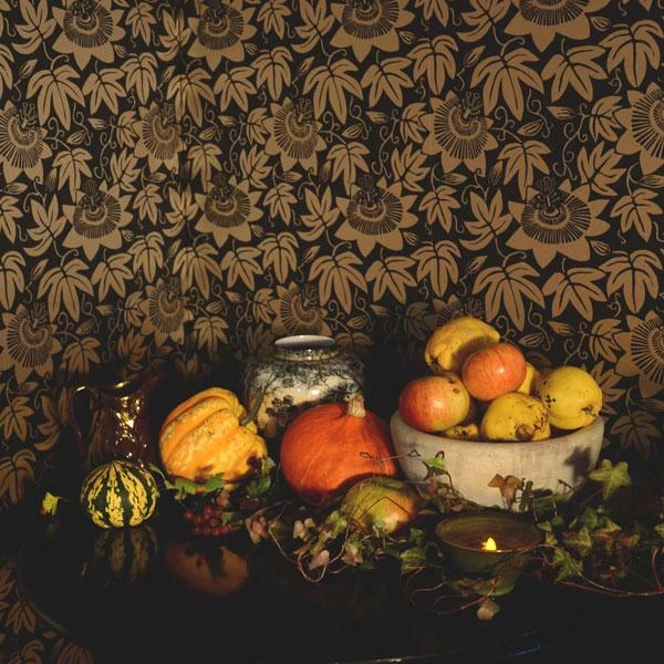 Passion Flower works well in an alcove or as a deep border above a picture rail. Itβs perfect for bringing a touch of dark maximalism to a room, and when combined with pastel shades adds interest to a mid century scheme.