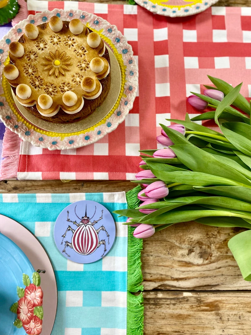 - Add a touch of charm to your dining table with the Red & Pink Gingham Cotton Placemat by Rice. Made from high-quality cotton, this placemat is both durable and stylish.