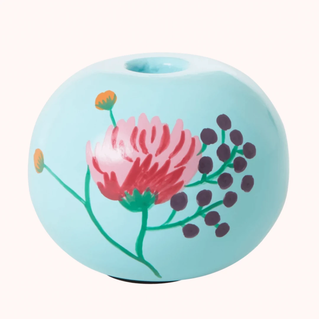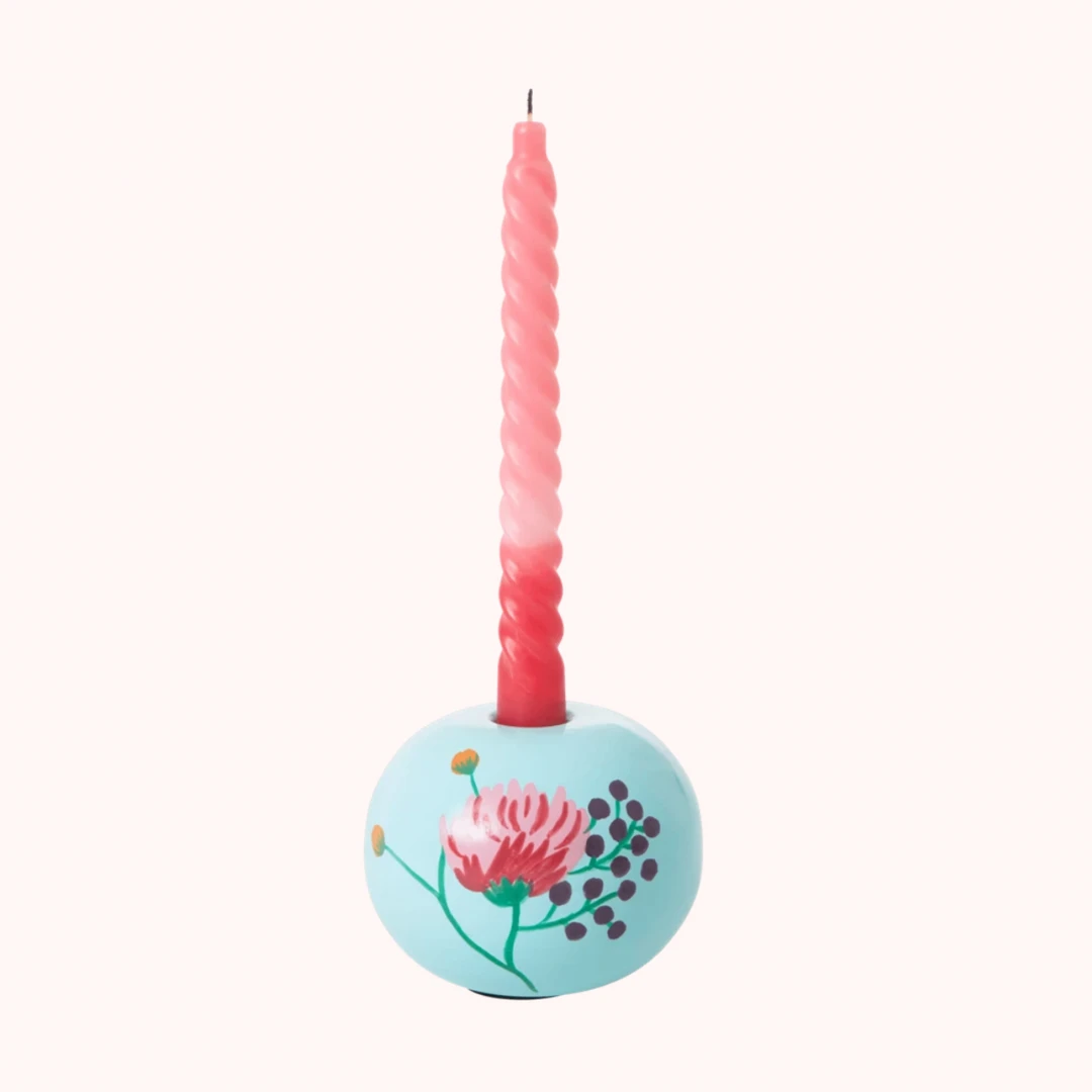 A classic has been revamped. We love the hand-painted details on this holder meaning no two products will ever be the same, which we think is part of the charm. This candle holder is perfectly paired with the neon tapers or twisted dip dye candles for a fun and playful table scape. Measures H 8 cm x Dia 10Â cm.Â