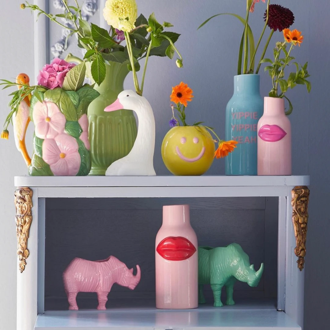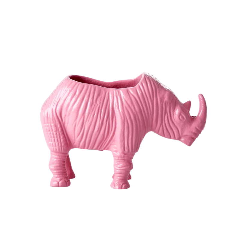 - Elevate your home decor with the Rice By Rice RHINO METAL FLOWER POT in SOFT PINK. This retro-inspired flower pot is perfect for adding a touch of tropical charm to your living space, kitchen, or garden.