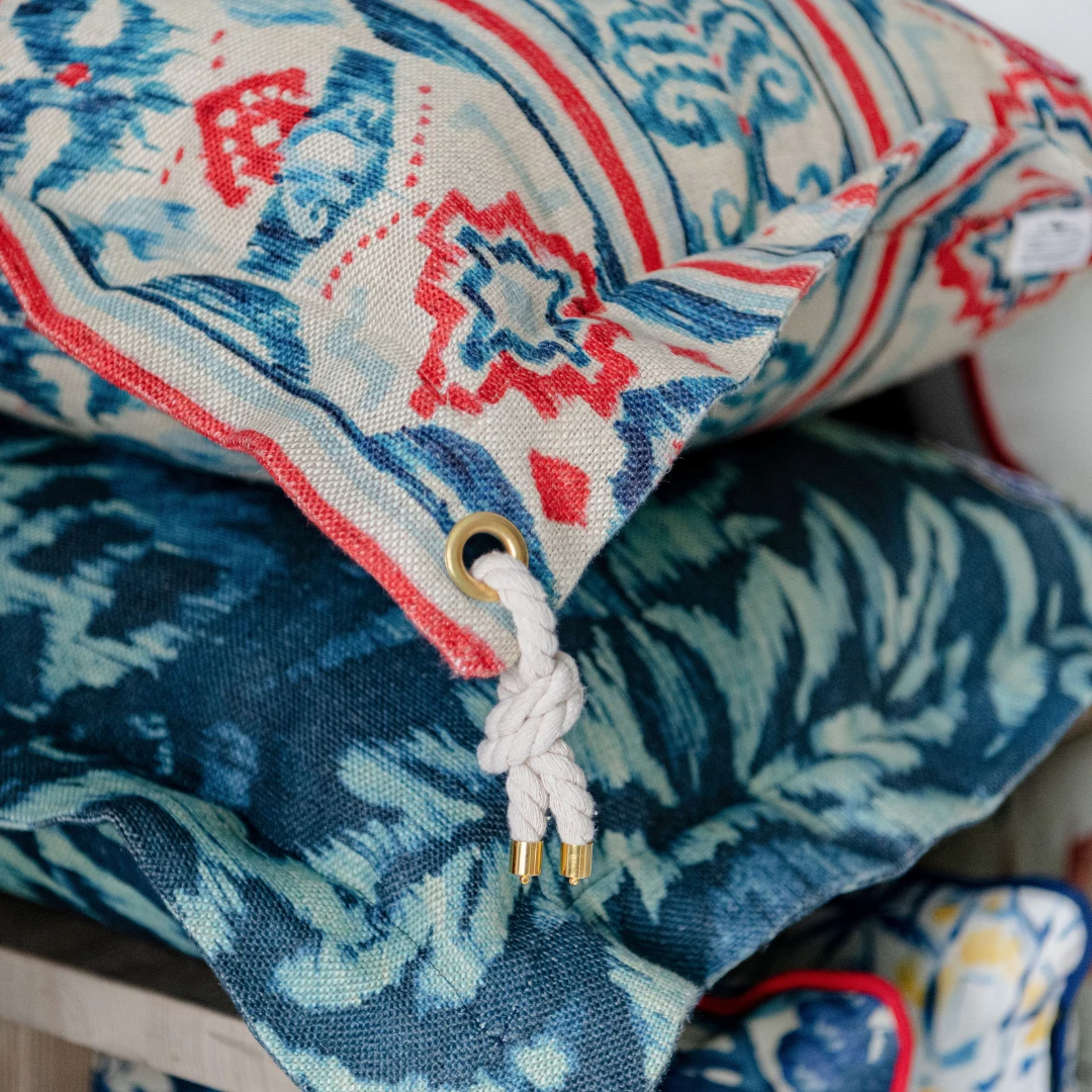 True Mediterranean colours blend beautifully together in an elegant story of Greek inspired summer’s bliss. Throughout the entire design, shapes and soft strokes of paint retrace the character of the sun-kissed poppy flowers dancing in the soft sea breeze on washed background. Inspired by the traditional dying technique of Ikat, the MEDITERRANEO IKAT is a heavy weight linen ideally to be used for upholstery, draperies and soft furnishings.Â