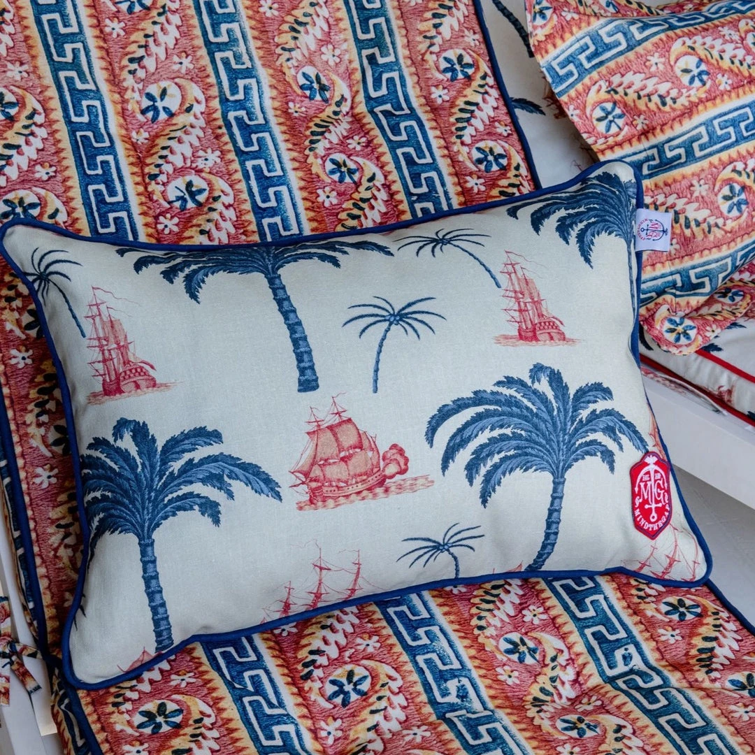 With a true Mediterranean inspired design, the Aegean outdoor cushion displays wonderful island-life details, all while oozing calm holiday vibes. Made of 100% polyester fabric and with polyfoam filling, the cushion is decorated with an embroidered nautical patch, being a great option to enhance your sunbeds or outdoor furniture.
