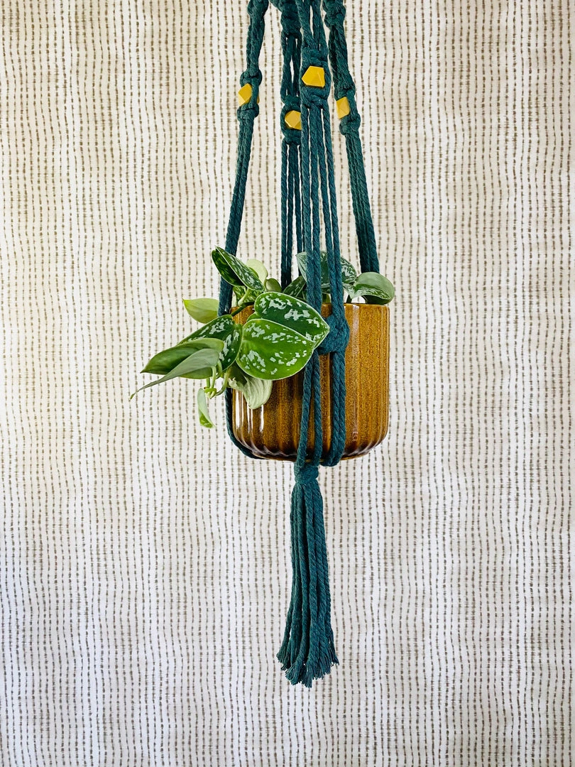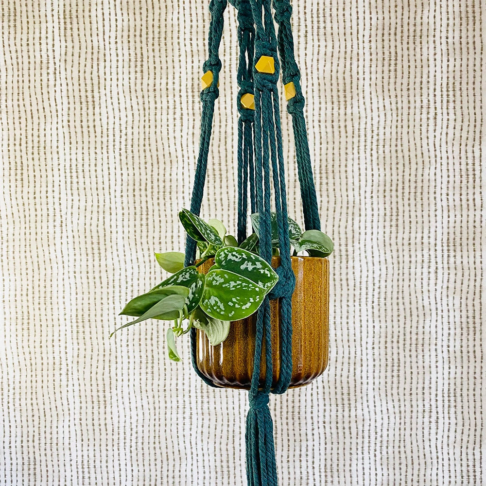 Green Plant Hanger with Hand Painted Yellow Beads.