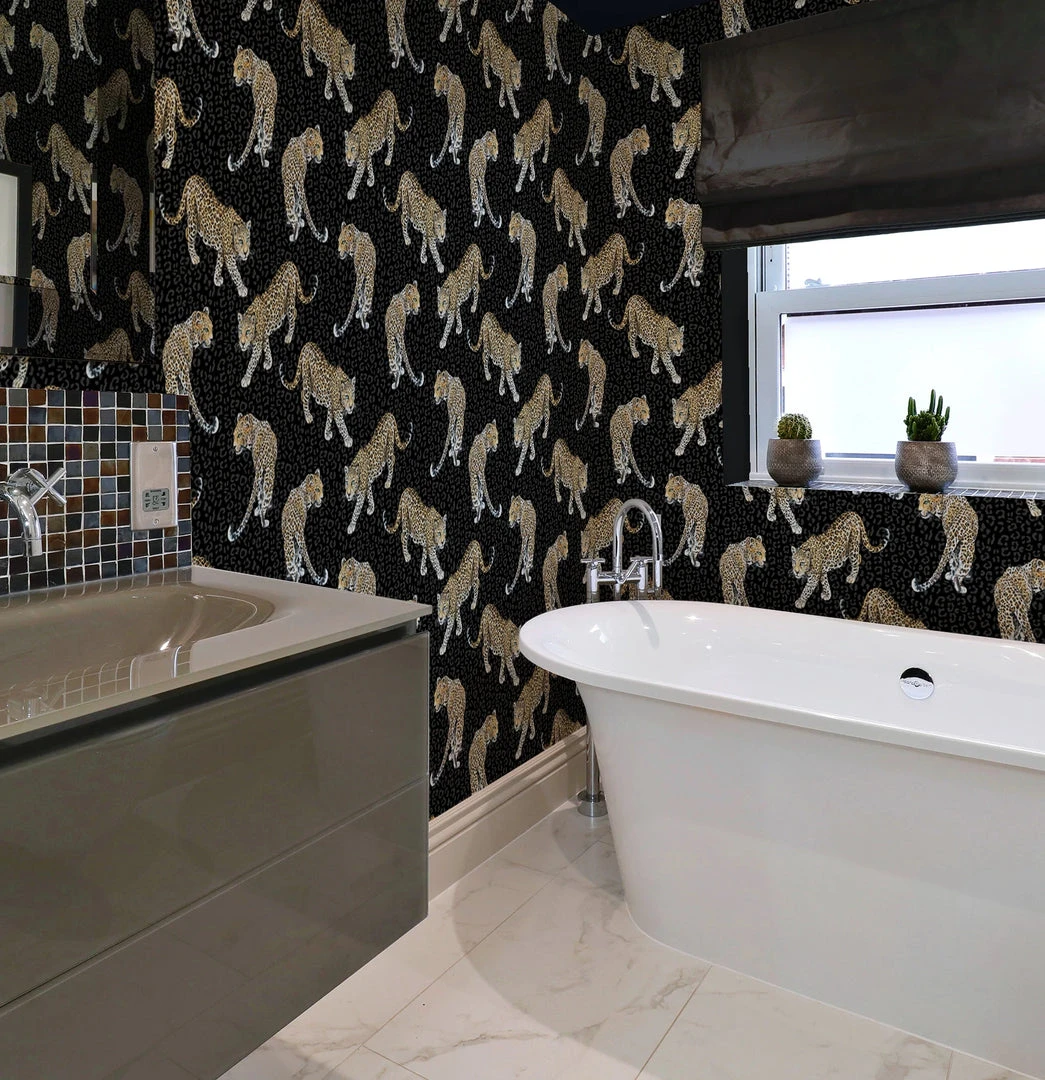 The Graduate Collection Rose & Thorn All Over Leopard Wallpaper Blue – Nature & Animals Wallpaper