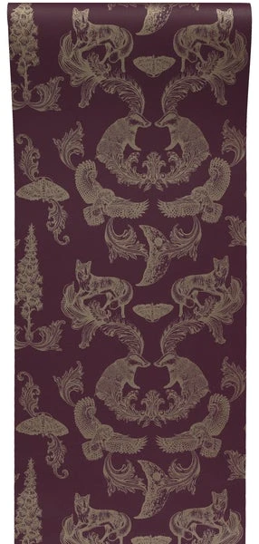 The Graduate Collection Rose & Thorn Dipped In Moonlight Wallpaper – Metallic Gold & Burgundy | Premium Home Decor
