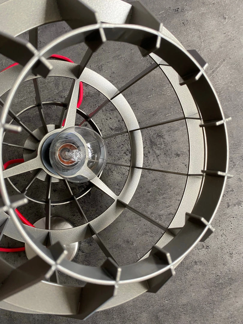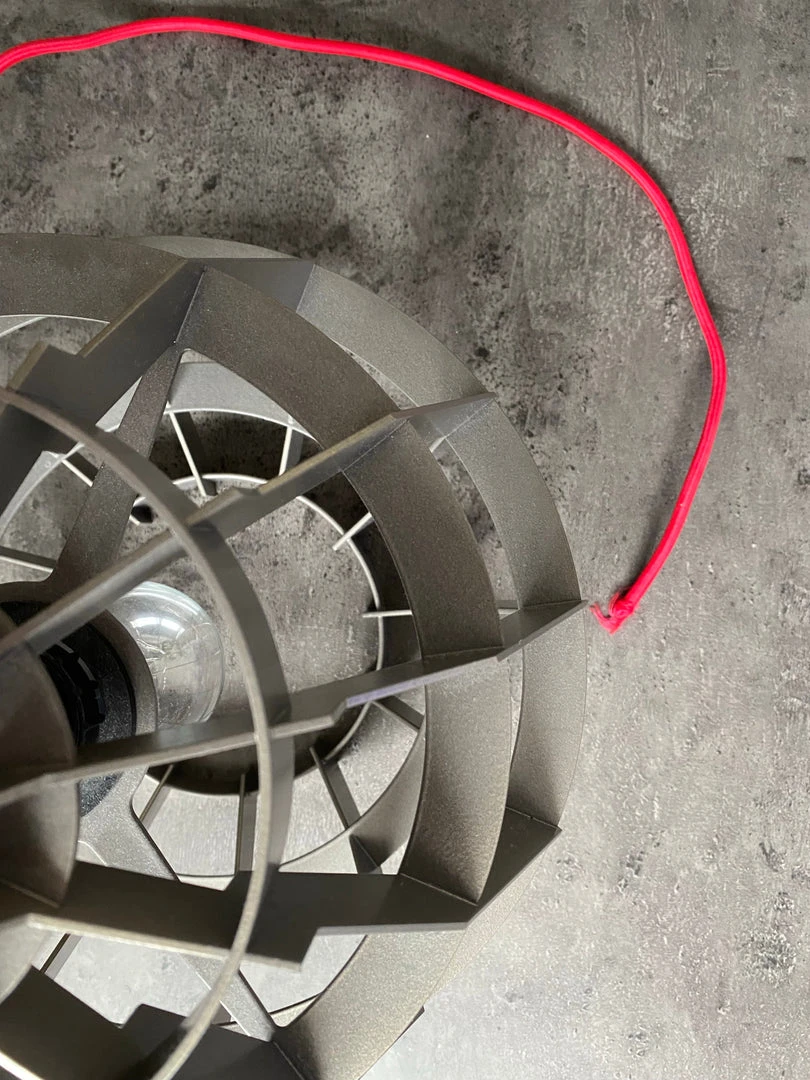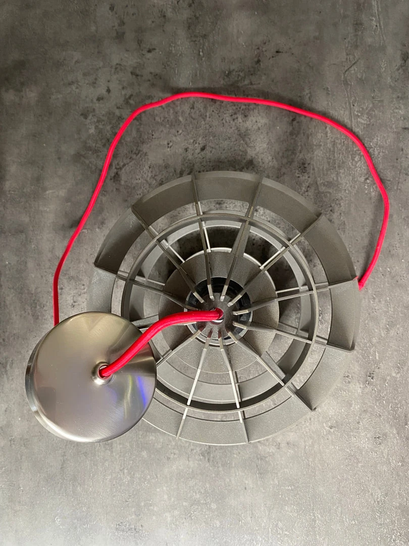 | Material | Nickle / Brushed Surface Ceiling fixing: metallic brushed  Red fabric cable 120 cm length from top of lamp  | ||||||