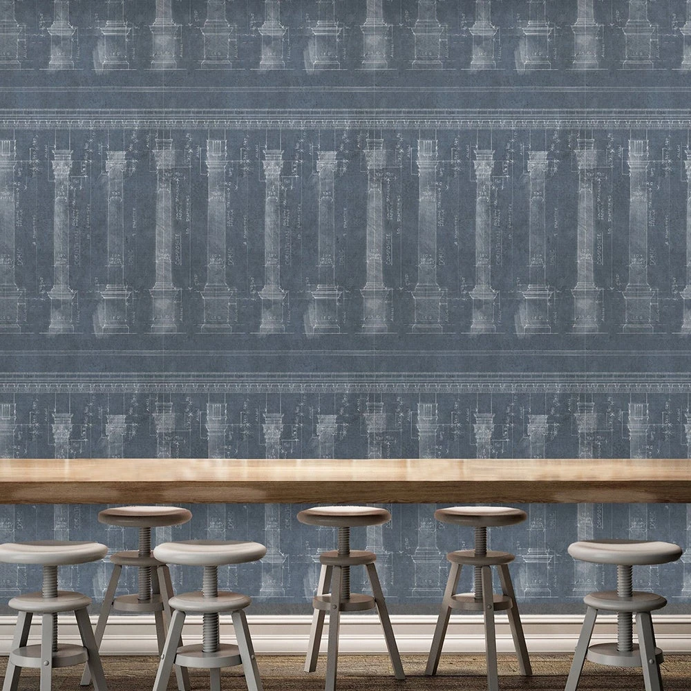 Thedesignyarduk The Craftsman Colonnade Blue Wallpaper – Premium Comic & Themed Wallpaper for Home Decor